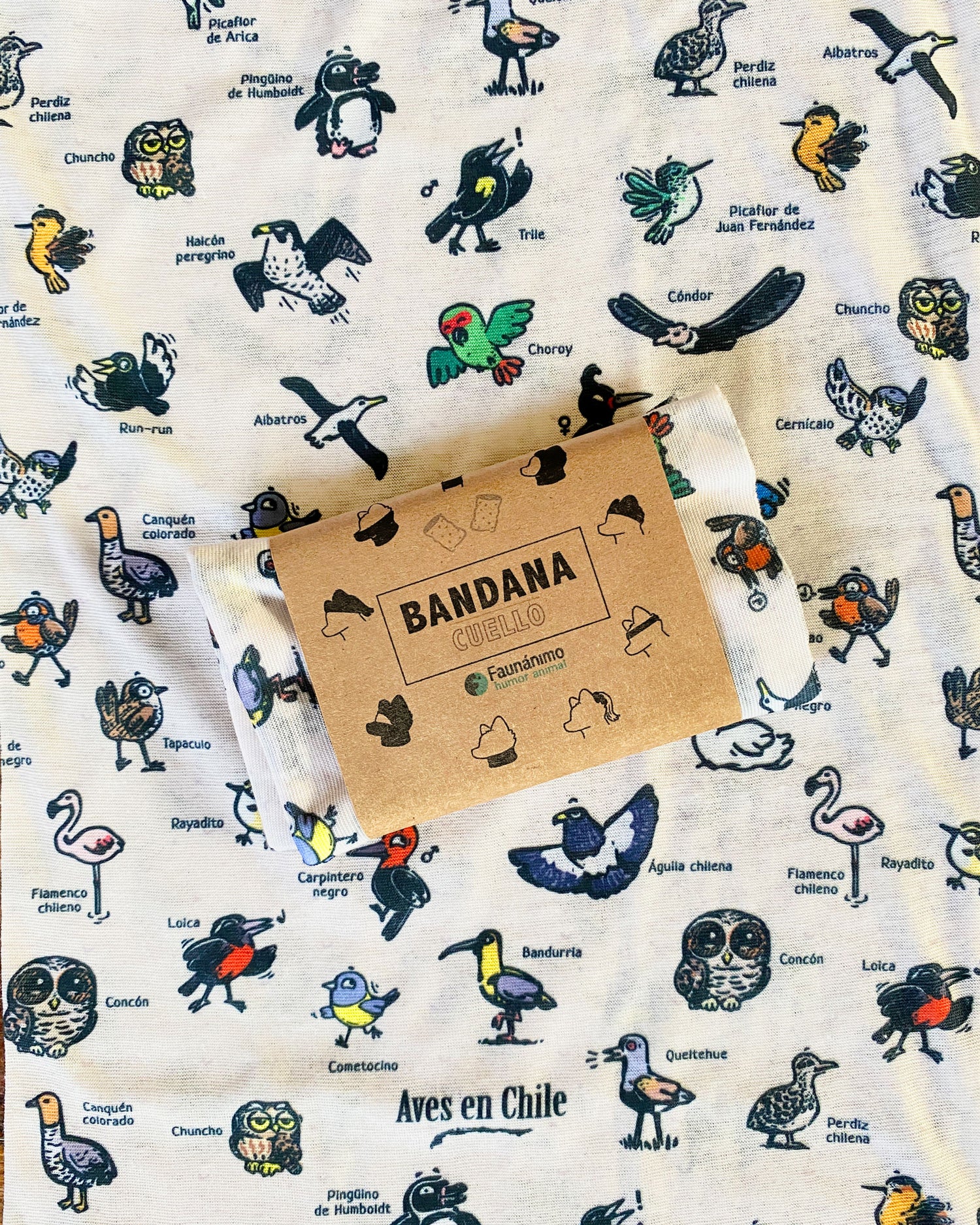Ideales para las aventuras en la naturaleza. Estas bandanas vienen estampados con distintos diseños originales de la fauna de Chile.