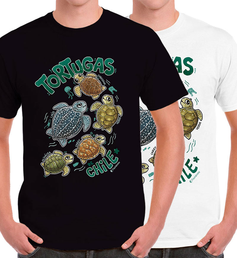 Polera de algodón estampada con dibujo full color, con diseño de las Tortugas de Chile.
