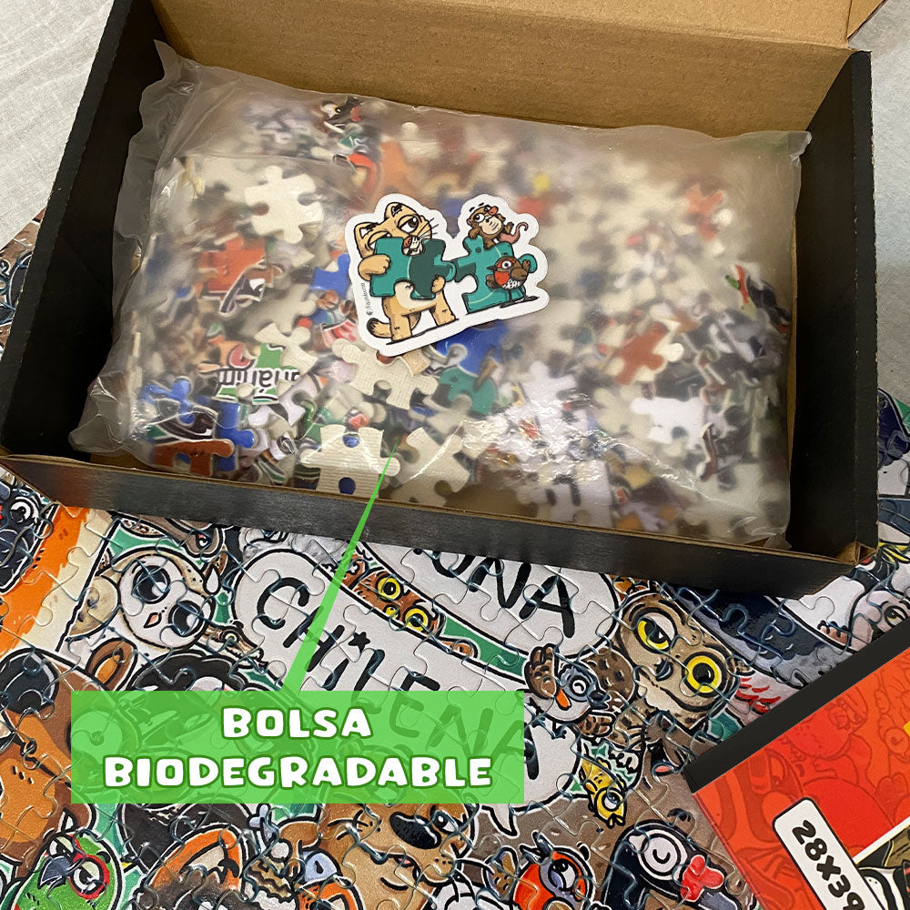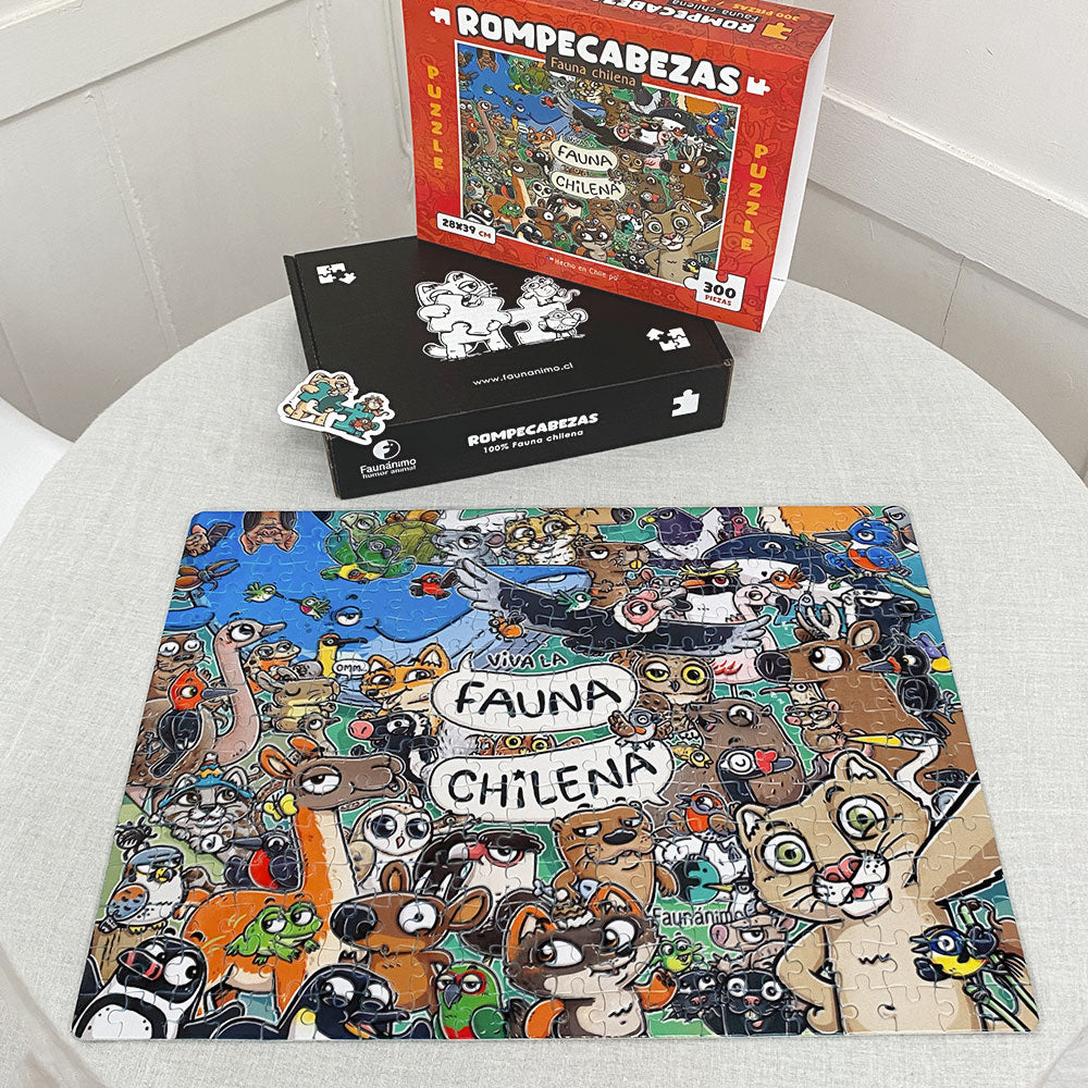 Una ilustración que alberga una gran numero de especies nativas da diseño a este puzzle para entretenerse y aprender.